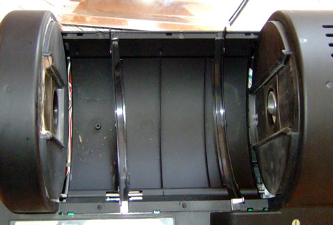 Um den Gene Cafe zu öffnen muss man zunächst die obere durchsichtige Abdeckung entfernen und beide Schrauben im Boden lösen. Anschließend kann der Konkavspiegel entfernt werden, indem man ihn zu sich heranzieht, um das vordere Teile aus der Verankerung zu entfernen. In die umgekehrte Richtung werden die hinteren Laschen gelöst (Achtung: der Spiegel ist nicht symmetrisch - d.h. obacht beim Zusammenbau). Nach dem Ausbau des Spiegels lassen sich die Plastikschienen links und rechts entehmen (auch hier wieder Achtung: links und rechts beim Zusammenbau nicht vertauschen!).